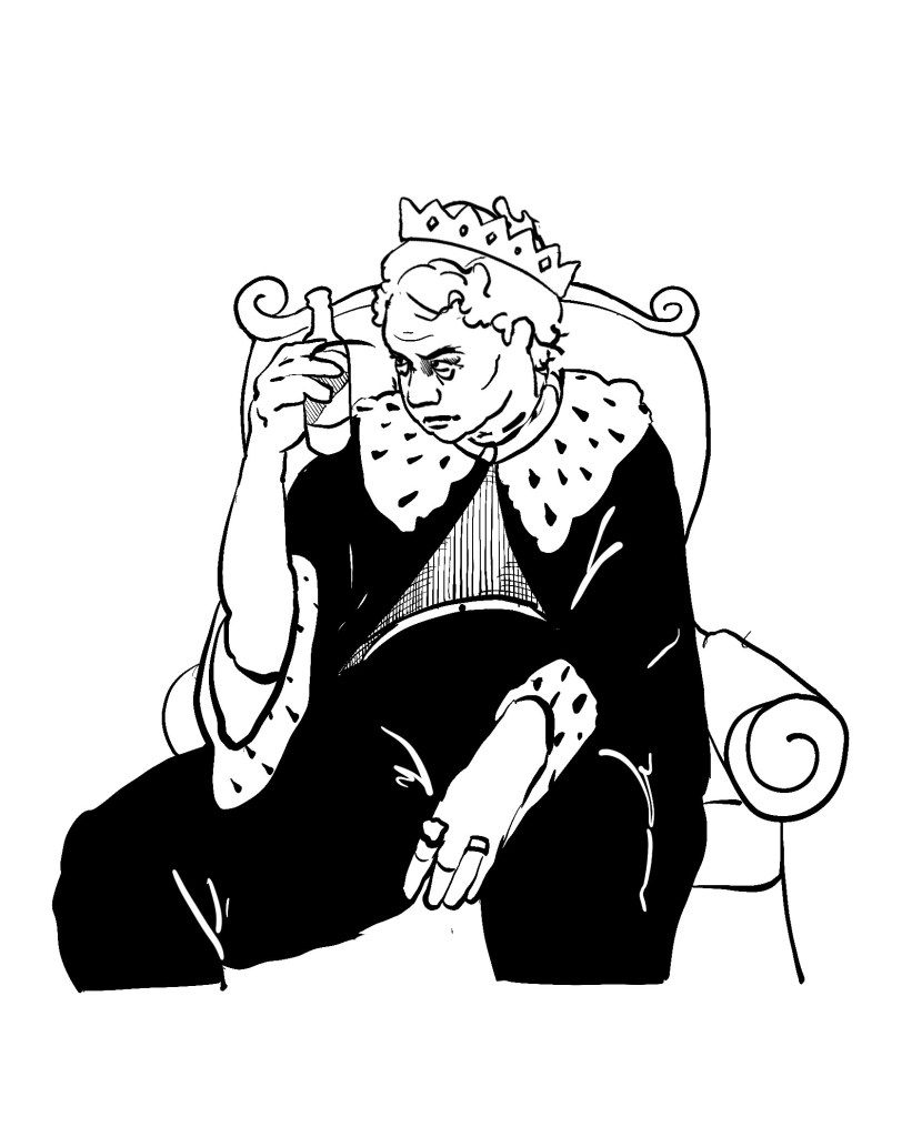 | King | Y | As a man the King has a Y chromosome, or you could imagine him as an absolute Yob. (Picture below) |